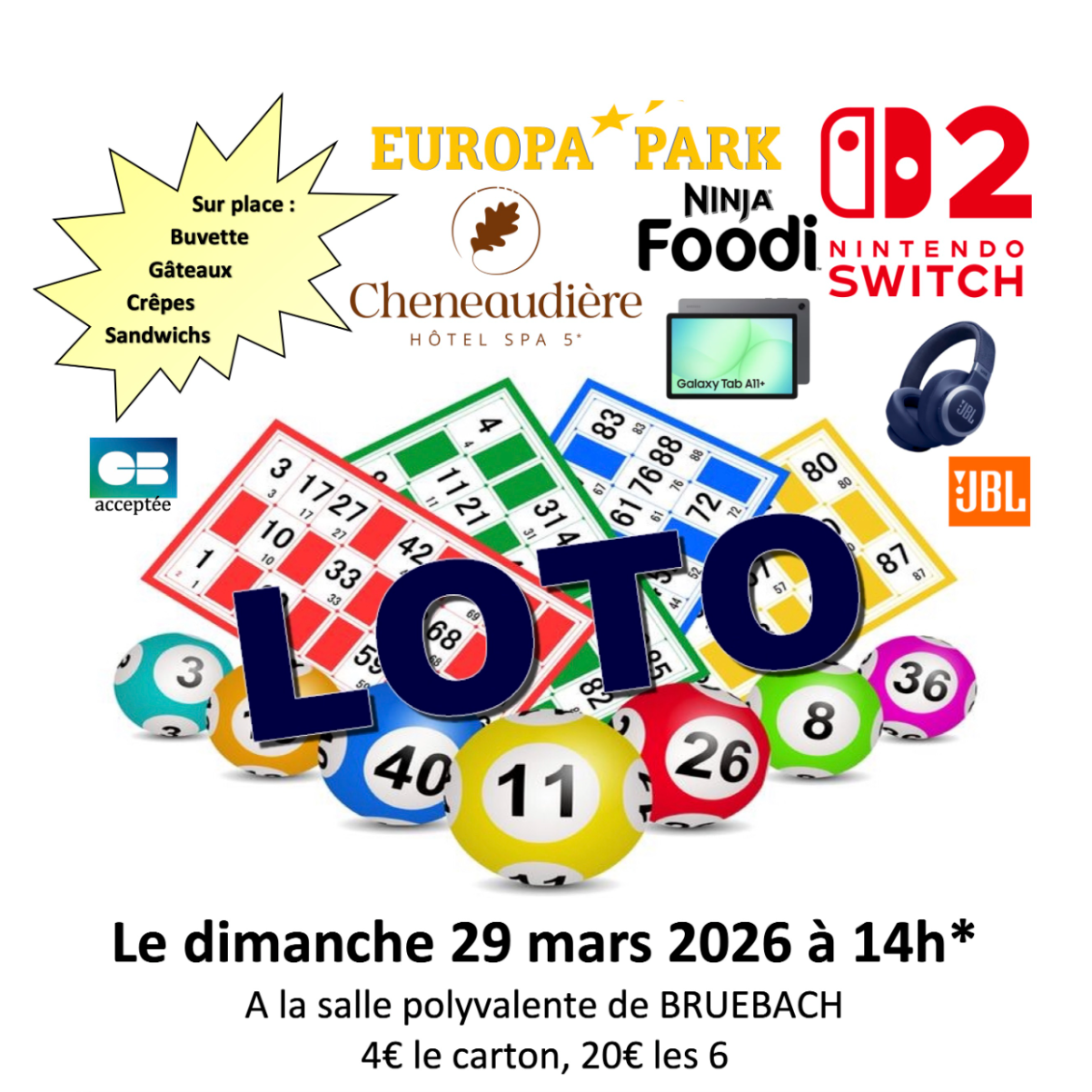 Le dimanche 29 mars 2026 à 14h, l'APE Montjoie organise son annuel LOTO !