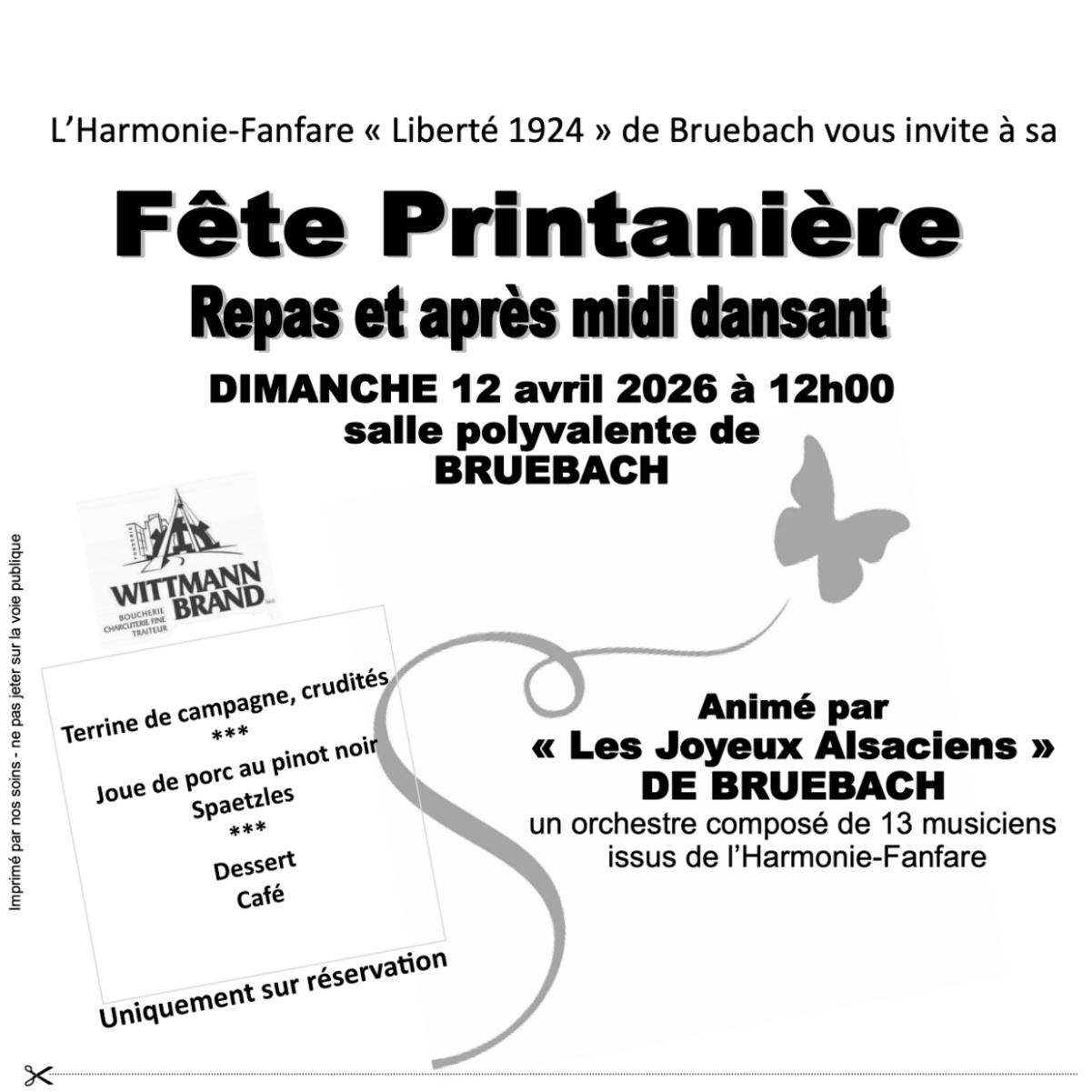 le DIMANCHE 12 avril 2026 à 12h00 à la salle polyvalente de BRUEBACH
